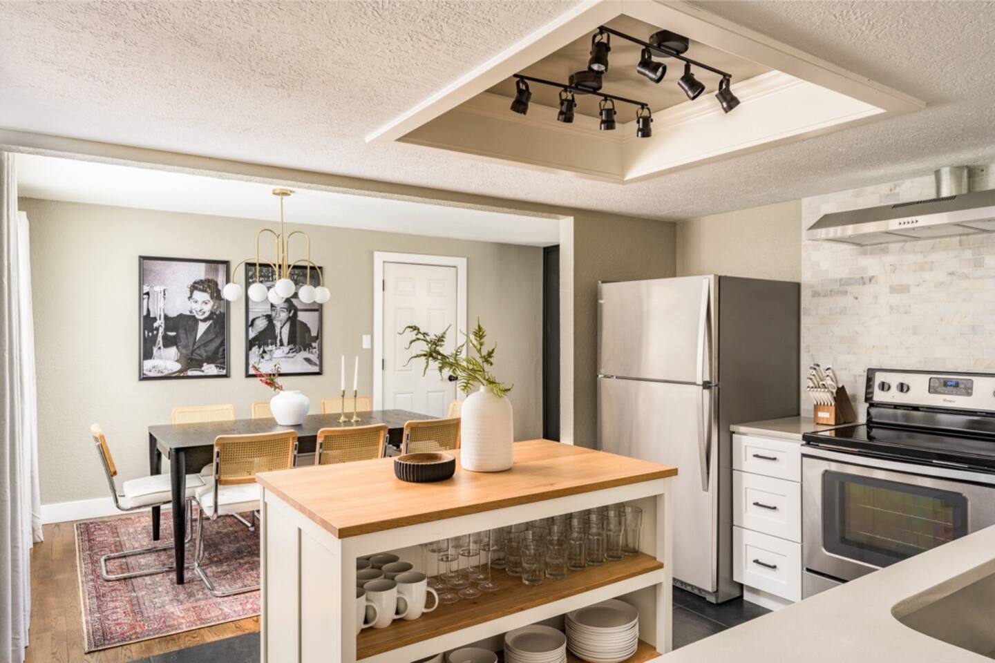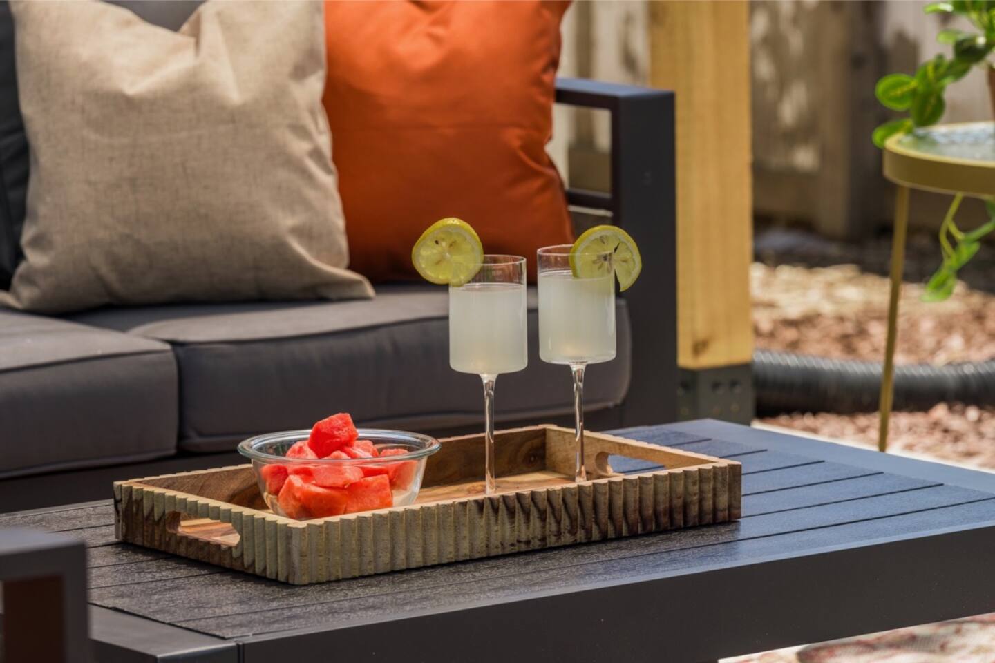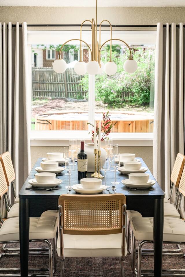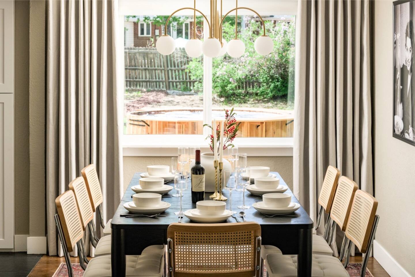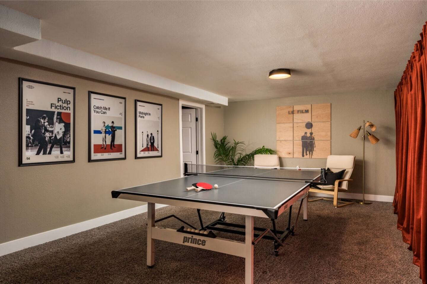 KEY FEATURES: ☀ Cedar Hot Tub ☀ 2.5 baths including tub ☀ Electric fireplace ☀ Two 65” Roku-enabled Smart TVs ☀ Professionally designed house ☀ Master bedroom w/ king ☀ Keurig coffee station ☀ High-speed WiFi w/Autonomous standing desk and 32” monitor ☀ Large outdoor patio with a shaded lounge area as well as dining area ☀ Fenced backyard with basketball hoop ☀ Fully equipped + stocked kitchen ☀ Onsite parking and washer/dryer ☆☆ BEDROOMS ☆☆ This spacious home is the perfect location for a group getaway with four elegant bedrooms that sleep twelve guests comfortably. Luxurious linens and bedding exude a high-end feel and large built-in cupboards provide plenty of space to unpack and settle in for a relaxing stay. Bedroom 1: first floor ✔ Master suite with en suite half bath ✔ Comfortable king-sized bed with memory foam mattress ✔ Room darkening curtains ✔ Large closet for hanging clothes and storage cubes for other storage Bedroom 2: first floor ✔ Comfortable queen-sized with memory foam mattress ✔ Room darkening curtains ✔ Closet for hanging clothes and storage cubes for other storage Bedroom 3: first floor ✔ Comfortable queen-sized with memory foam mattress ✔ Room darkening curtains ✔ Closet for hanging clothes Bedroom 4: basement ✔ Queen over queen and twin over twin bunk beds ✔ Comfortable memory foam mattresses ✔ Huge walk-in closet with dresser for clothes storage ☆☆ BATHROOMS ☆☆ The home's three stylish bathrooms are thoughtfully stocked with plush towels and the following essential toiletries/amenities for your convenience: ✔ Public Goods shampoo, conditioner, and body wash ✔ Extra toilet paper ✔ Hair Dryer Half Bathroom: private bathroom in the master suite on the first-floor Full Bathroom 1: Professionally designed full bathroom with high-end finishes. Located off the first-floor hallway and features a tub as well as a hand-held sprayer Full Bathroom 2: large walk-in shower located in the basement ☆☆ KITCHEN, LIVING ROOM & DINING ☆☆ The entrance of the home opens into the heart of the common area, which provides the perfect place to relax, entertain, and enjoy quality time with your family or traveling companions. The living room flows into the dining room which flows into the kitchen. LIVING ROOM ✔Stylish shiplap fireplace with electric fireplace insert ✔ 65” Roku-enabled Samsung Smart TV with apps to stream TV shows or movies using your own logins ✔Large, comfy sofa KITCHEN ✔ Open plan layout ✔ Stainless steel appliances and finishes: refrigerator, freezer, microwave, electric oven and stove ✔ Vitamix blender, Instant Pot, and Frigidaire Gallery Countertop Crunchy Chewable Nugget Ice Maker ✔ Coffee bar with electric kettle, French Press, and Keurig coffee maker with fully stocked K-Cups DINING ROOM ✔ Seats 8 guests comfortably on a wood table with a stylish chandelier overhead. ☆☆ SUNROOM/LIBRARY ☆☆ The sunroom is just steps from the kitchen and is the perfect place to enjoy a cup of coffee, read a book, or play a board game with friends . The room features: ✔ Large windows letting in plenty of natural light ✔ Large table for board games or spreading out other work ✔ Record player ✔ Books and a chess board ✔ Two reading chairs ☆☆ BACKYARD & PATIO ☆☆ The backyard has entertainment for all ages and interests ✔ Luxurious Cedarwood Hot Tub ✔ Large lounge area with cozy furniture under shaded pergola ✔ Market lights ✔ 8-person outside dining table with umbrella ✔ Huge fenced in backyard with grass ✔ Basketball hoop on concrete slab. Basketball included! ☆☆ BASEMENT LOUNGE, REC ROOM, WORKSPACE, & LAUNDRY ROOM ☆☆ BASEMENT LOUNGE & REC ROOM Whether your group is recovering for their next adventure in the 300 days of sunshine that Denver offers or looking to be indoors, the basement offers yet another space to be entertained. The velvet room darkening curtains will make you think you’re at at a movie theatre and with a Roku in your hands the streaming options are limitless on the 65” Samsung TV. ✔ 65" Samsung Roku-enabled smart TV ✔ Ping Pong Table ✔ Comfy couch for watching movies ✔ Board games WORKSPACE Need to get some work done while traveling? We’ve got you covered! Our work from home amenities include: ✔ Autonomous electric standing desk ✔ Two LG Monitors (24” and 32”) ✔ Printer LAUNDRY ROOM Pack light! The home has a laundry room that includes: ✔ Washer and dryer ✔ Ironing board and iron ✔ Starter supply of laundry detergent. ★☆ Book Today & Let Us Take Care Of You In Arvada! ☆★